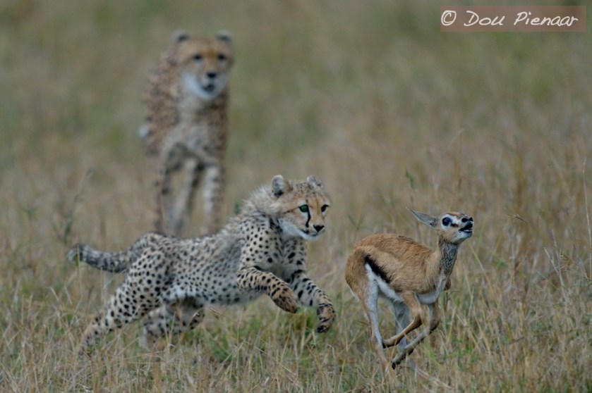This image is the first of a few that I will post. The image tells the story of a diligent Cheetah mother that caught a Thomsons Gazelle fawn and without killing it made it available to teach her cub how to hunt. The story starts with the mother doing some innovative things to get her prey and I will shortly be posting images to illustrate this. As it turns out, I personally have picked up ‘African Tick Bite fever’ in the Mara and as soon as I am fully recovered I will post the drama as captured through my lenses. In the meantime here is a sample of the Cheetah Hunting Lesson. As usual feel free to let me know what you think of the image.